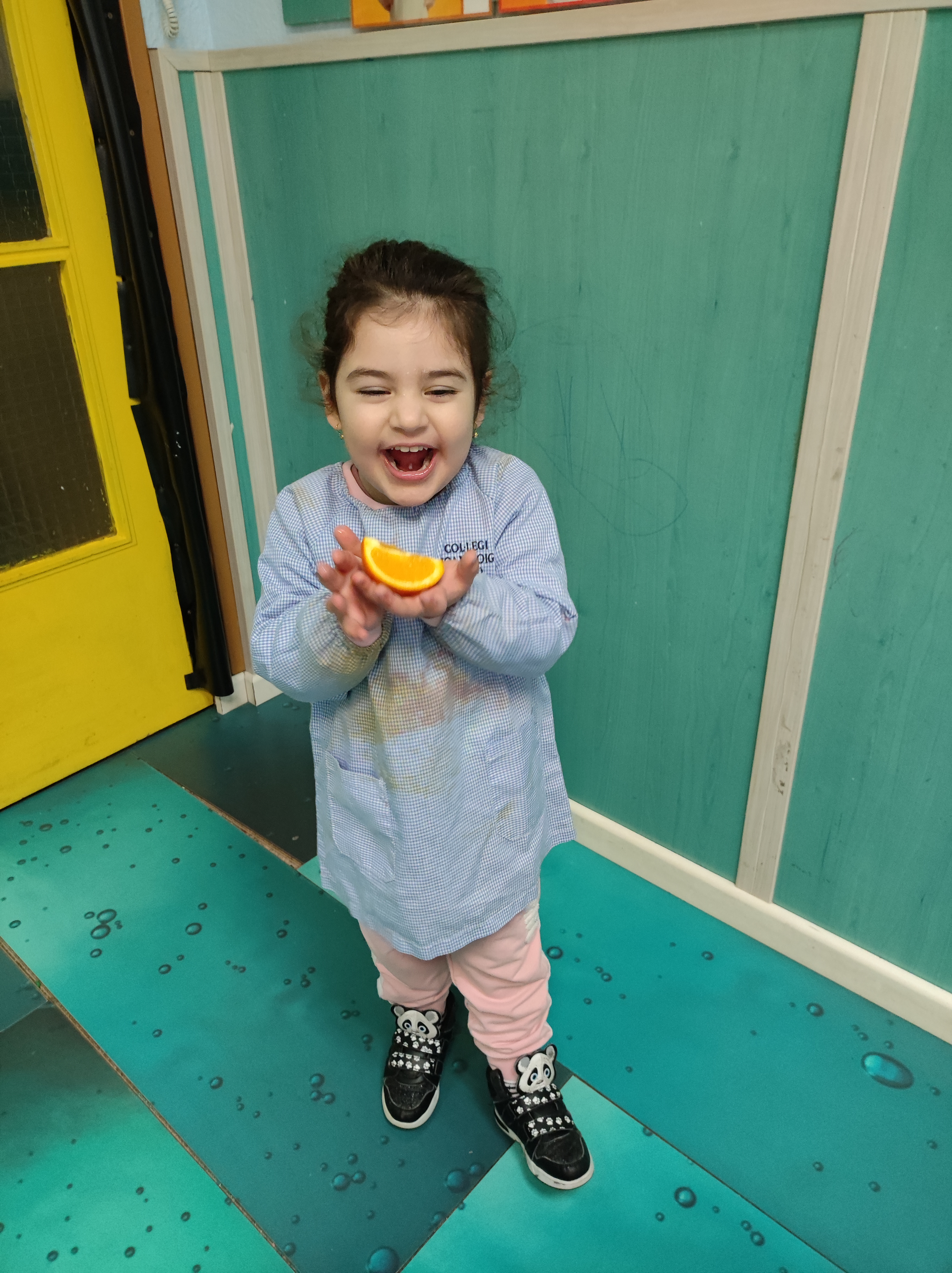 Avui, a la llar, hem experimentat amb taronja: L'hem observat, l'hem olorat, l'hem tastat... i finalment hem fet suc!