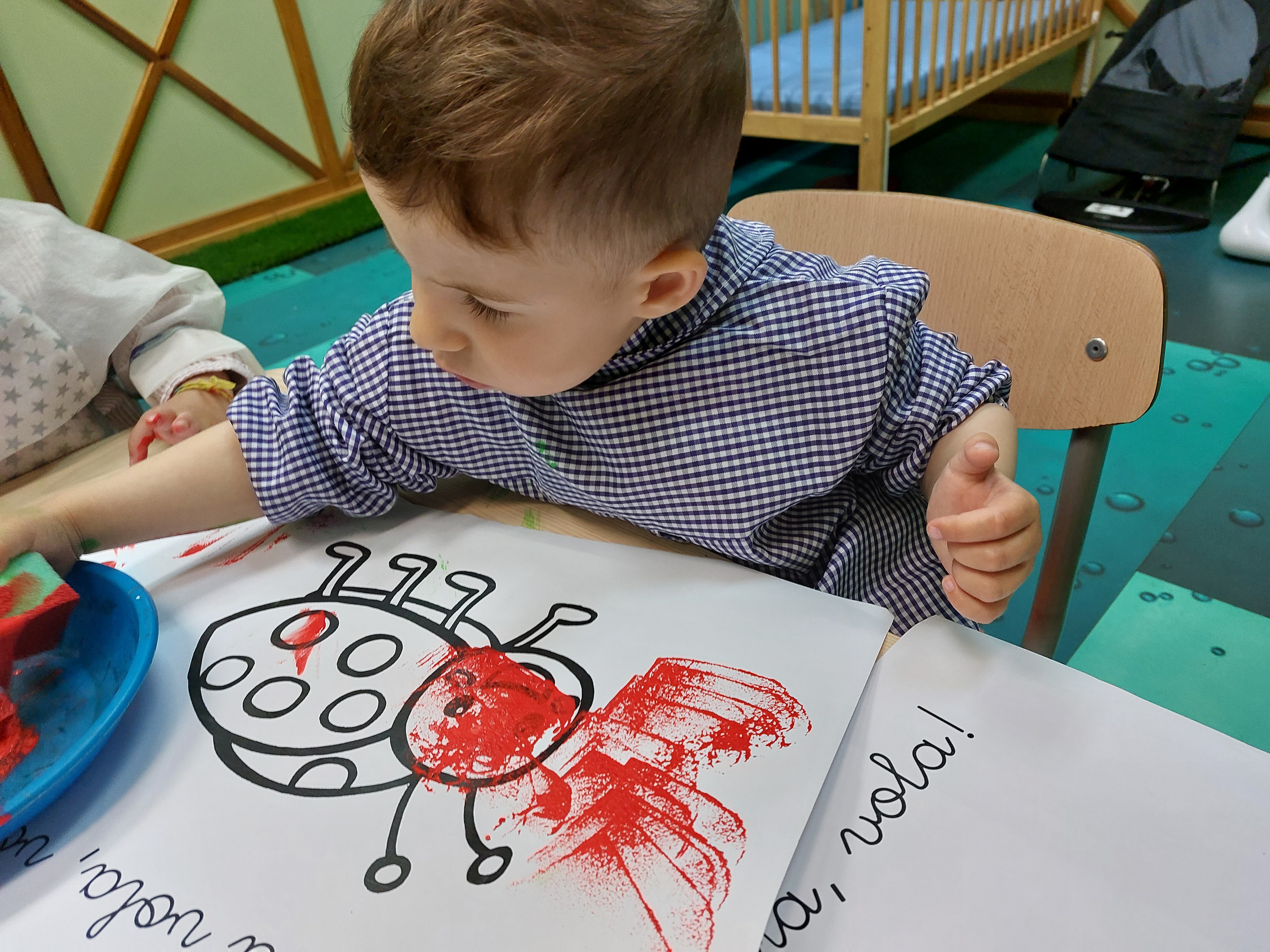 Per acompanyar l'estona d'expressió plàstica hem escoltat la cançó d'imagine per fomentar la seva creativitat i la cançó de la marieta vola vola.